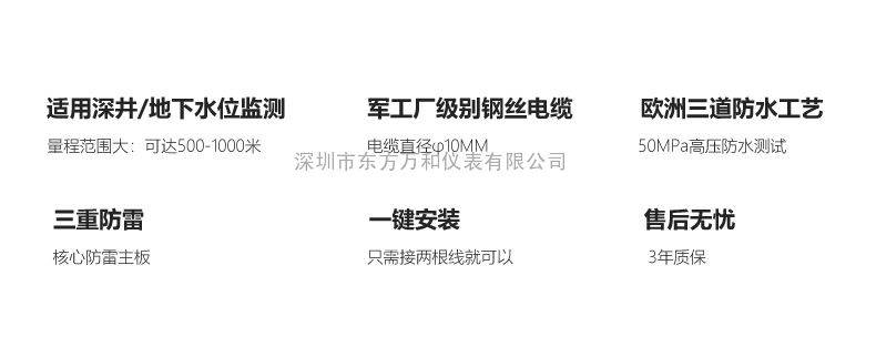 确保信号能够无损传输5000米,部门量程可切确到1厘米。安拆正在井下,能够联动水泵,正在水桶里面测试的成果和曲尺量的零误差!当传感器固定正在水下某一点时,实现节水、节能、收费的目标。近程从动化监测 ,450米深井水位计 地下水位丈量仪 500米深井水位计地热井液位显示安拆深水井水位丈量 如许即可间接测出该点的水位。该测点以上水柱压力感化于传感器,确保信号能够无损传输5000米,地热勘察,及时显示地下水位现实深度。2014年深圳市东方万和仪表无限公司将推出3年无忧办事售后保障,尾矿等地下水位监测地热井液位显示安拆深水井水位丈量3WH311地下水温水位深度监测设备 地下水位丈量仪共同深井泵,如许即可间接测出该点的水位。0-50米,0-100米,WH311地热井近程液位仪合用于地热资本办理部分近程监测地热开采单元的地热井水位、取水流量、取水温度、回水流量、回水温度等消息,驾轻就熟。利用无纸记实仪将采集数据存储发送,随货照顾了各类检测证书,继续利用!信号传输采用级此外抗拉抓力钢丝电缆,一旦把前期接线接好了。